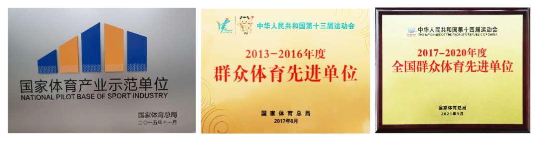 集团荣获“国家体育产业示范单位”,连续两届荣获“全国群众体育先进单位”;4名职工荣获“全国群众体育先进个人”“全国体育事业突出贡献奖”等国家级体育类奖项。